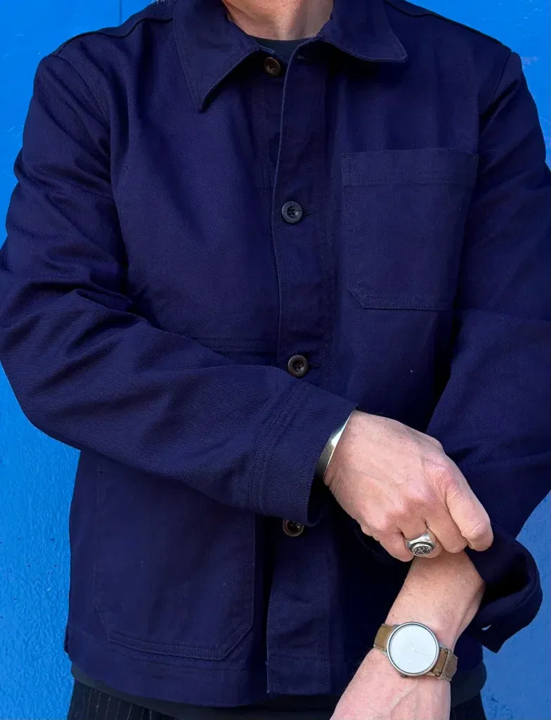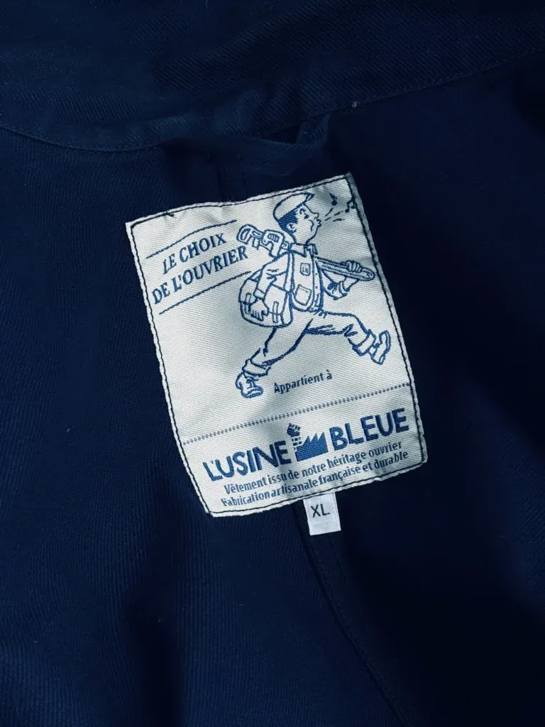 Tyget vävs hos en av Frankrikes äldsta textilväverier (grundat 1848) och färgas i östra Frankrike. Sömnaden sker hos en av landets sista specialister på arbetskläder, verksam sedan 1921. Varje jacka tvättas varsamt två gånger för att undvika krympning och få rätt patina redan från start.