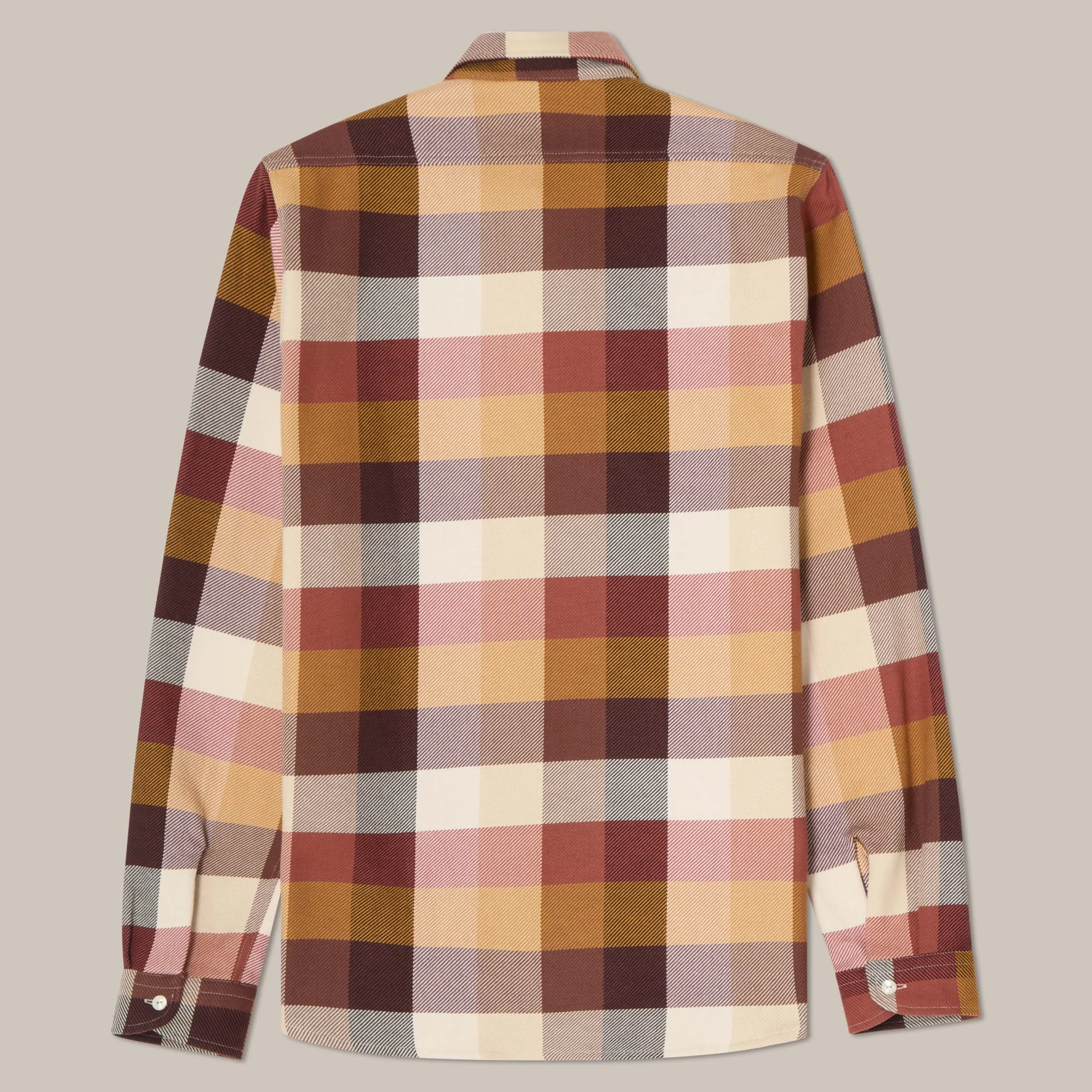 It’s made from an exceptional and robust flannel with a resistant outside and a super-soft inside – perfect as a warm overshirt or a layering piece when it gets really cold. The cut is traditionally boxy with plenty of room for movement. And subtle details, like buttoned chest pockets and cat eye closure, make it presentable in both log cabins and board rooms.
