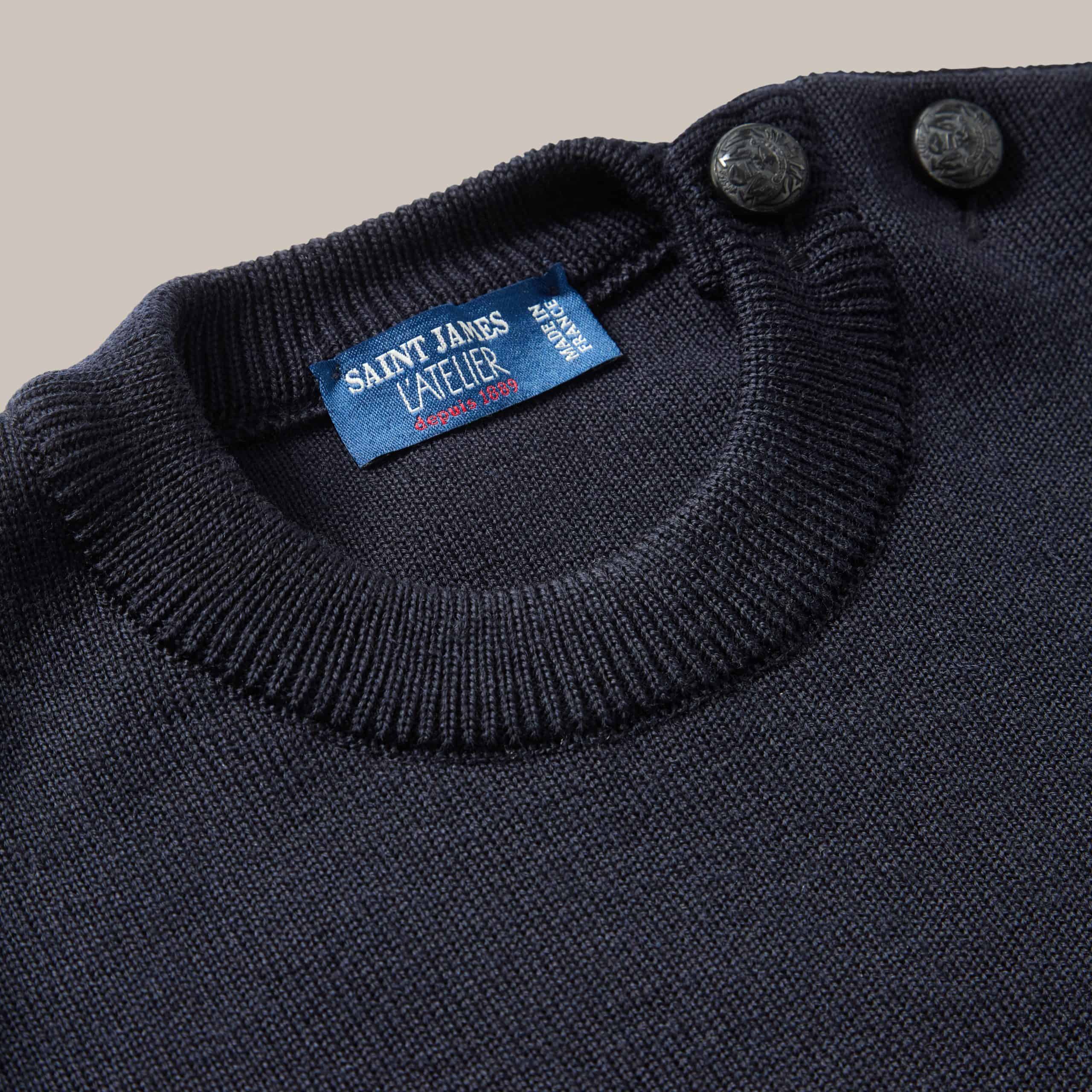 The classic sailor knit, with a more feminine silhouette and in a solid navy blue colour. Made from soft wool, with signature details, like shoulder buttoning.